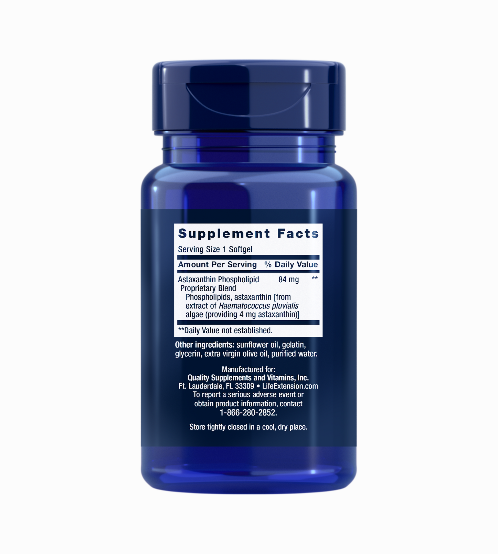 Astaksantinas yra riebaluose tirpi maistinė medžiaga, todėl norint optimizuoti jos įsisavinimą gamintojas derina 4 mg astaksantino su patentuotu 80 mg keturių fosfolipidų mišiniu.