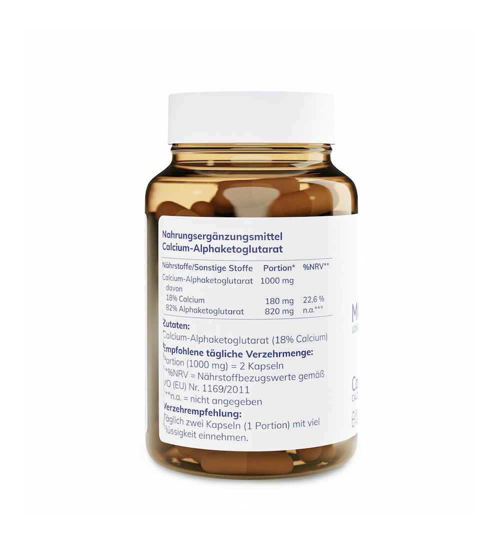 Kalcio alfa-ketoglutaratas (CaAKG) susideda iš kalcio (Ca) ir alfa-ketoglutarato (AKG). Derinys su kalciu užtikrina geresnį biologinį prieinamumą lyginant su gryna AKG forma.