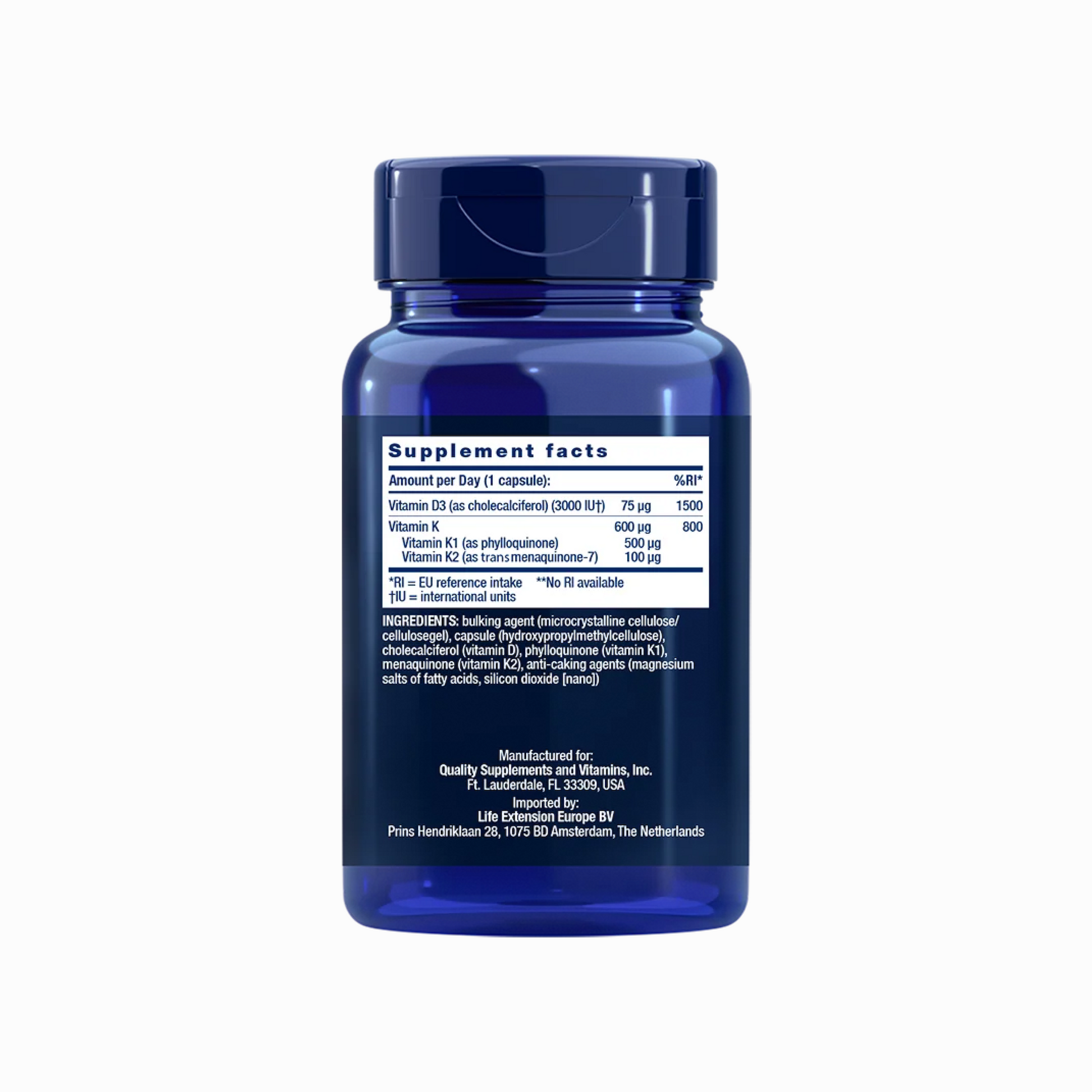 60 kapsulių, 1 kapsulėje: 75 µg Vitamin D3, 600 µg Vitamin K